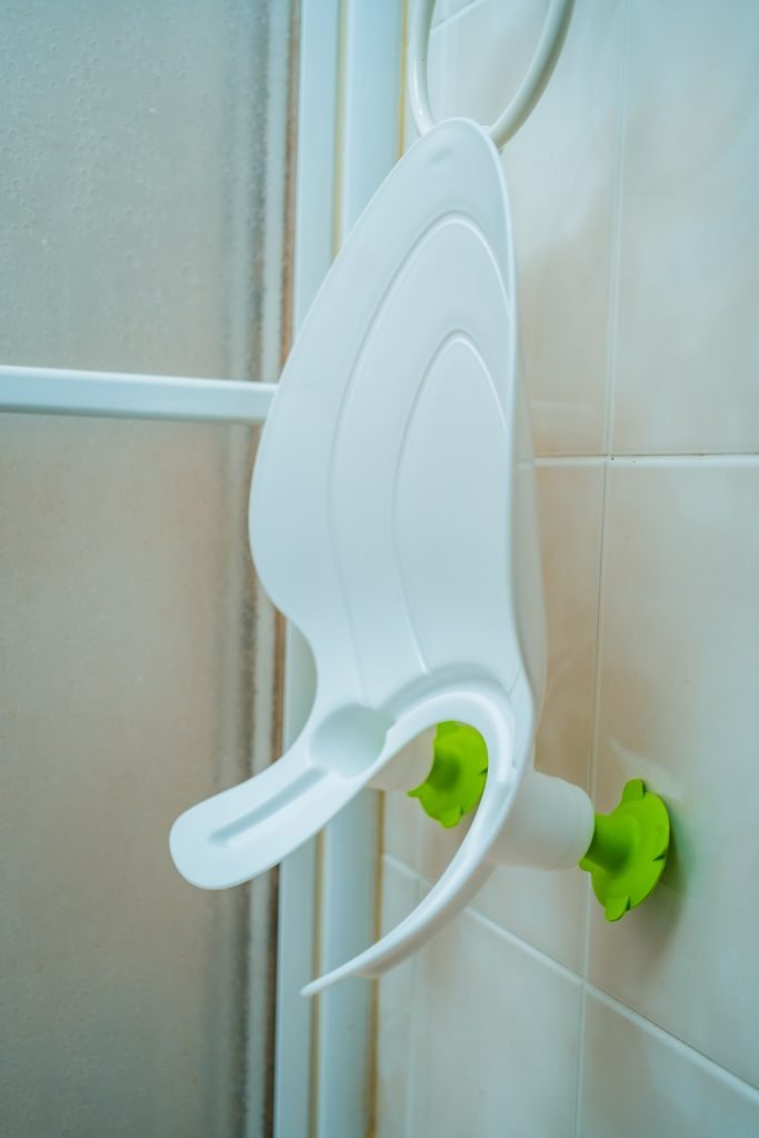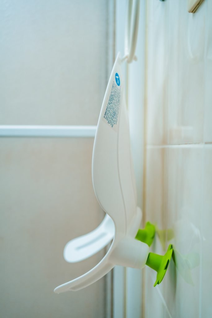 可樂椅背後有設計掛鉤,洗完屁屁和可能沾黏在可樂椅上的便便後,可以很簡單地掛在廁所的任何可掛之處晾乾,不用擔心收納的問題,非常方便貼心的設計。