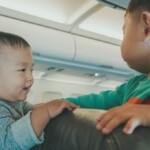 如果是夫妻一起坐飛機就沒什麼問題,但若一個人坐飛機的話,可以請空服員幫忙顧孩子,盡量快去快回,尤其避免在送餐的時段上廁所,不然容易被卡在走道上回不了座位,尤其是單走道的飛機更容易會進入進退兩難的窘境。