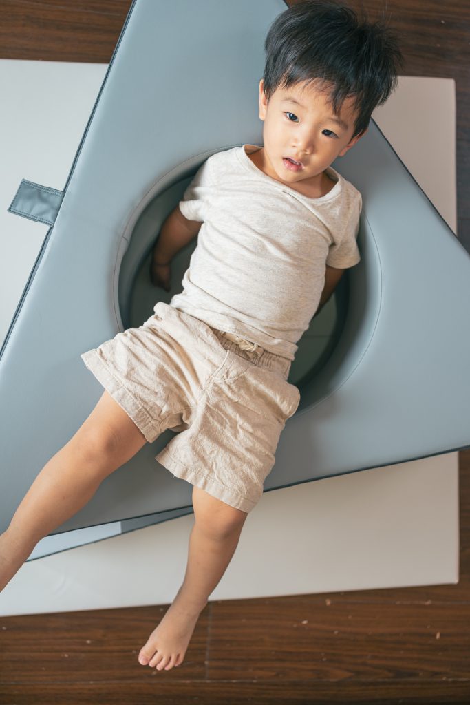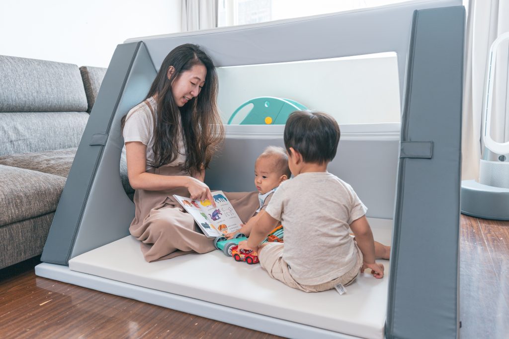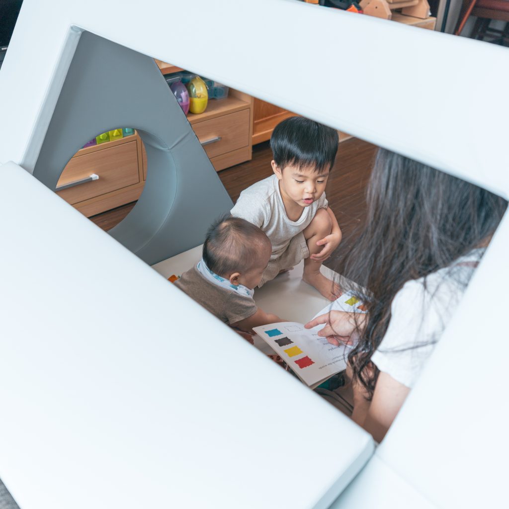 倒放之後的空間讓大人也能夠進入,讓父母孩子能在Alzipmat上一起遊玩、共讀、學習認知。