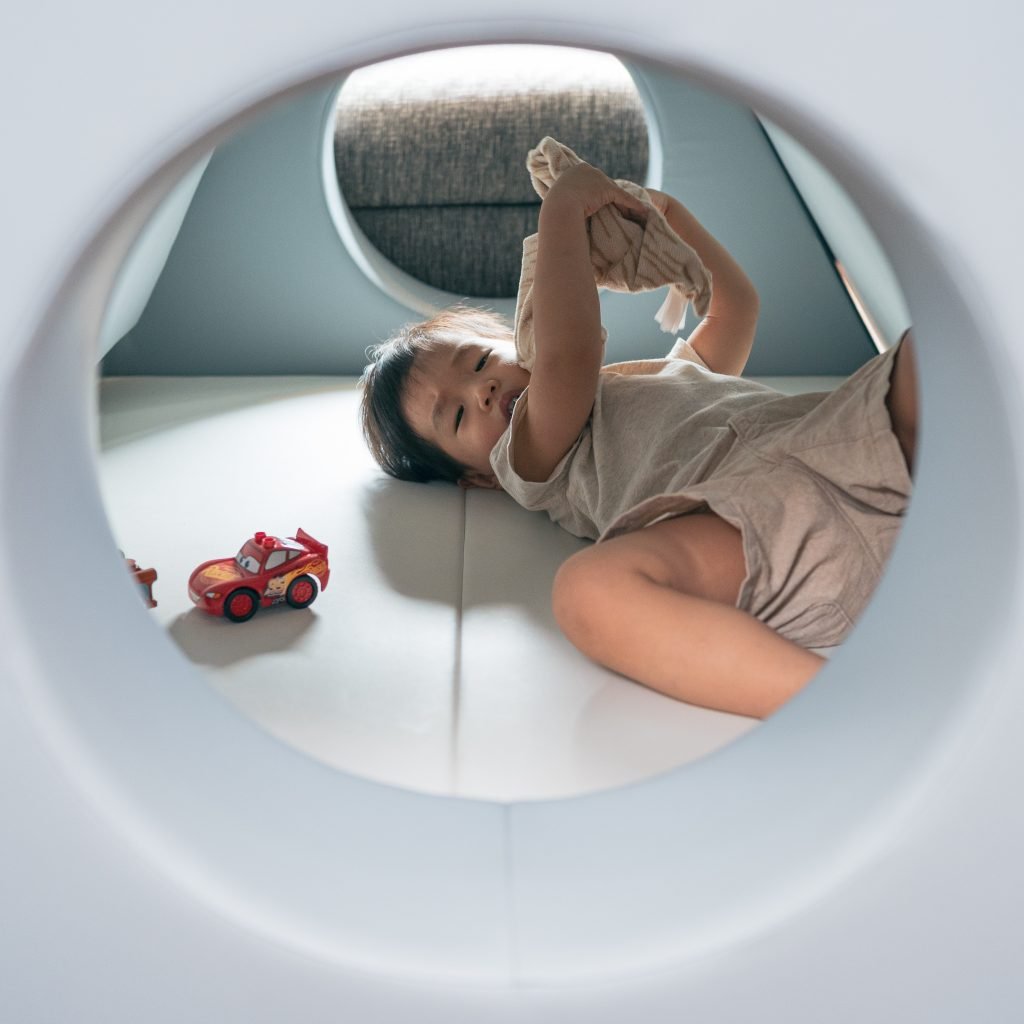 這個空間必須小到大人進不去,只有自己能全權掌握自己的行為、自己的小天地,而這也是兒童們建立安全感以及自我認知最重要的空間。