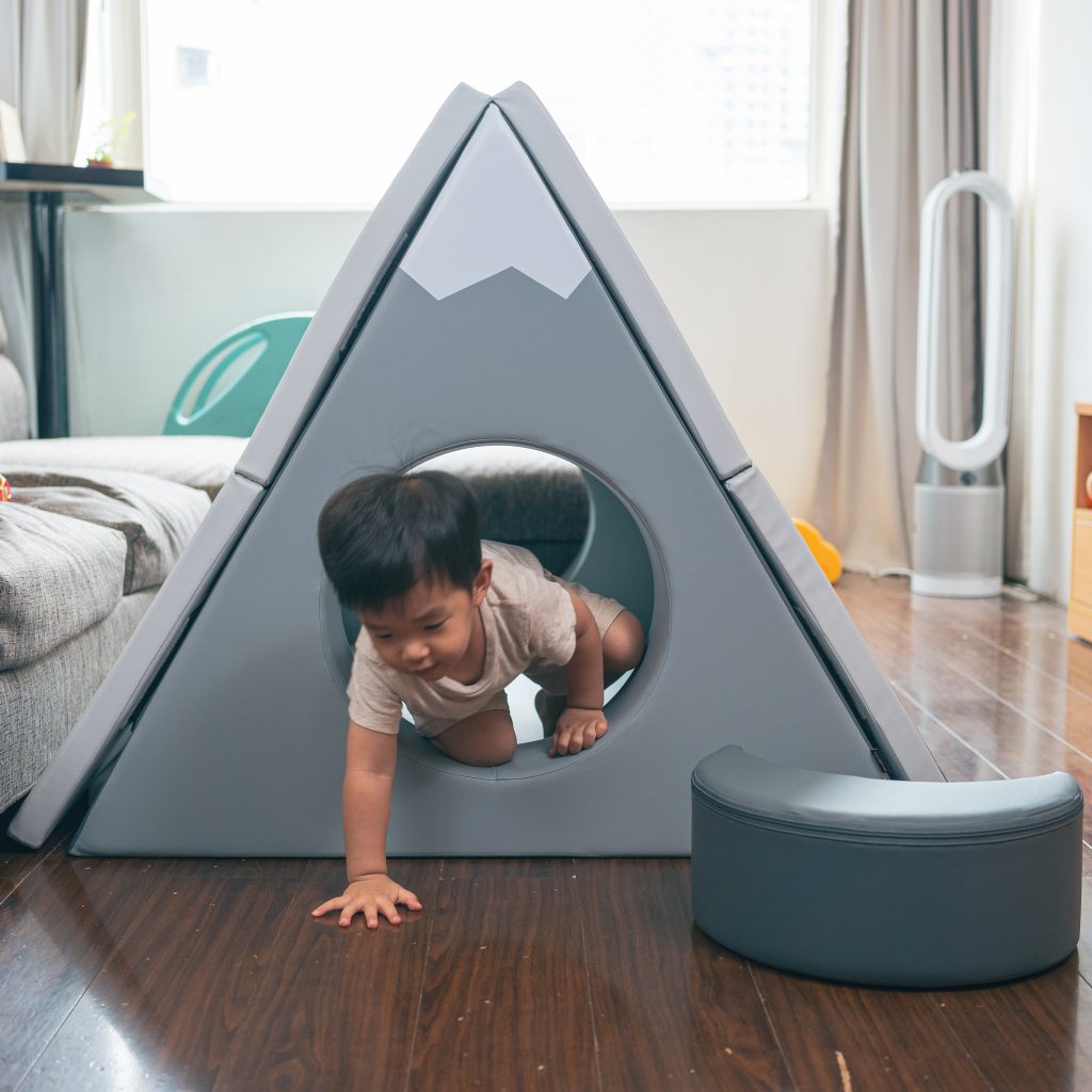 三角墊不只是撐起帳篷小屋,還可以疊起來讓孩子在裡面玩。