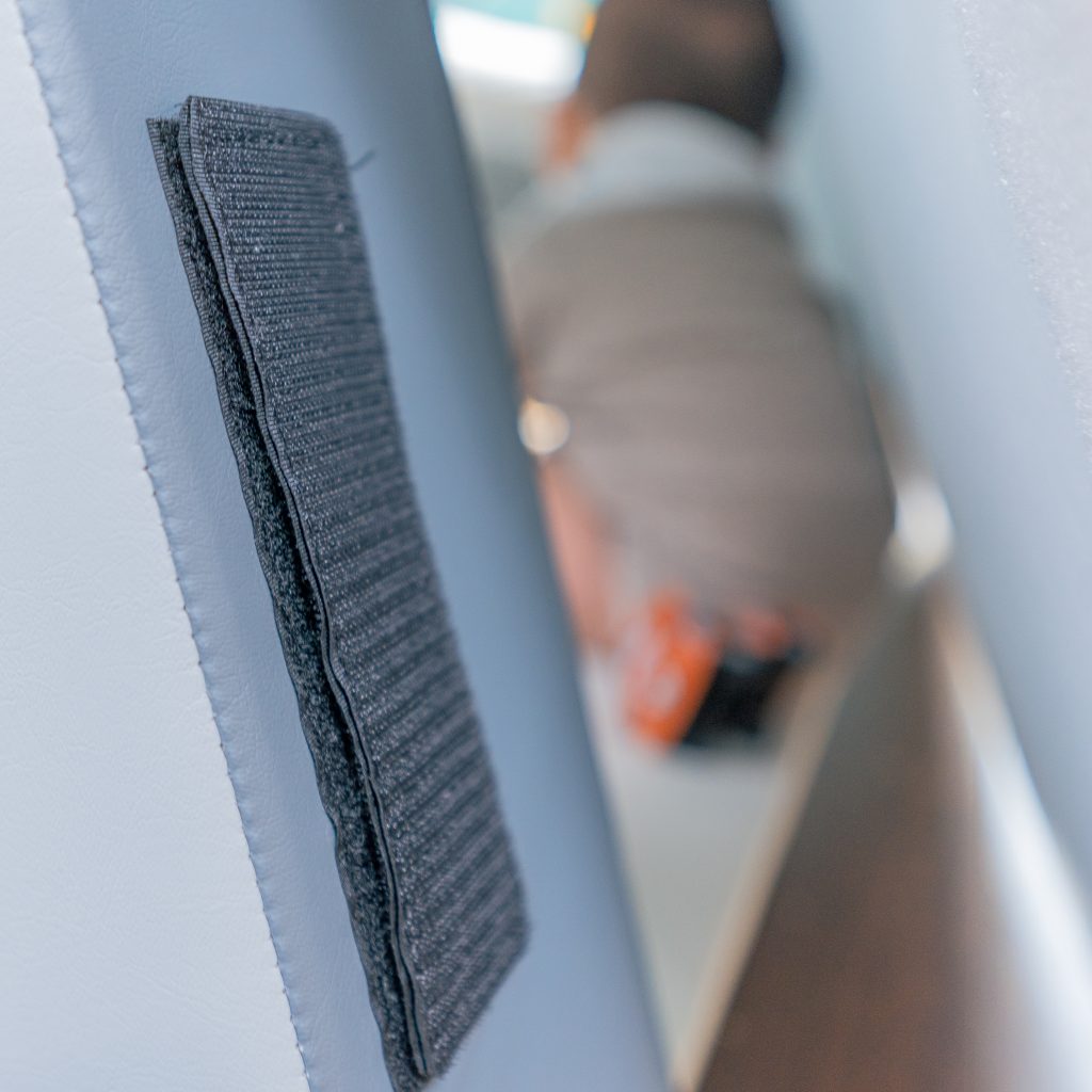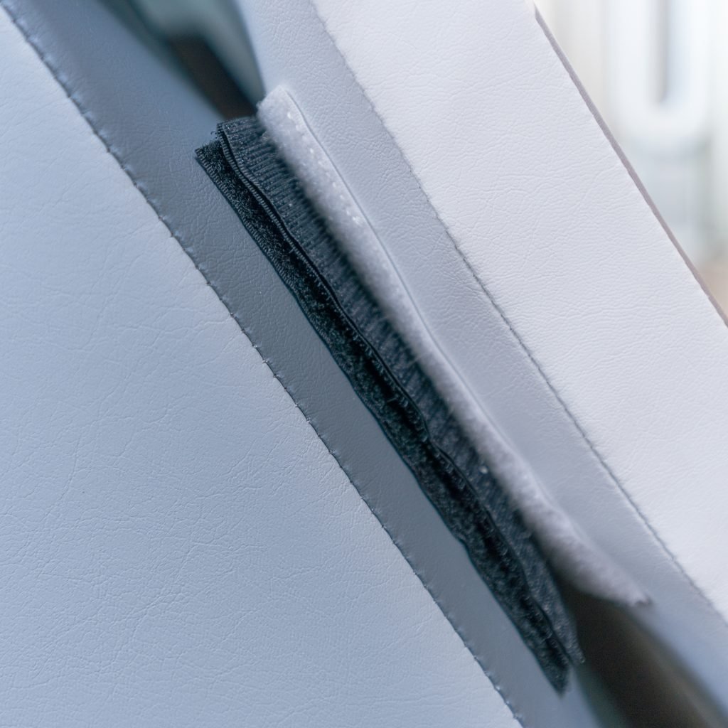 Alzipmat的魔鬼氈式三層式的,屋頂四折墊與三角墊的魔鬼氈是毛面,中間有一片雙面勾面的魔鬼氈。這樣的設計是讓各個部件獨立使用時,魔鬼氈的勾面也不會傷害到孩子嬌嫩的肌膚,可以說是貼心到極致的設計!