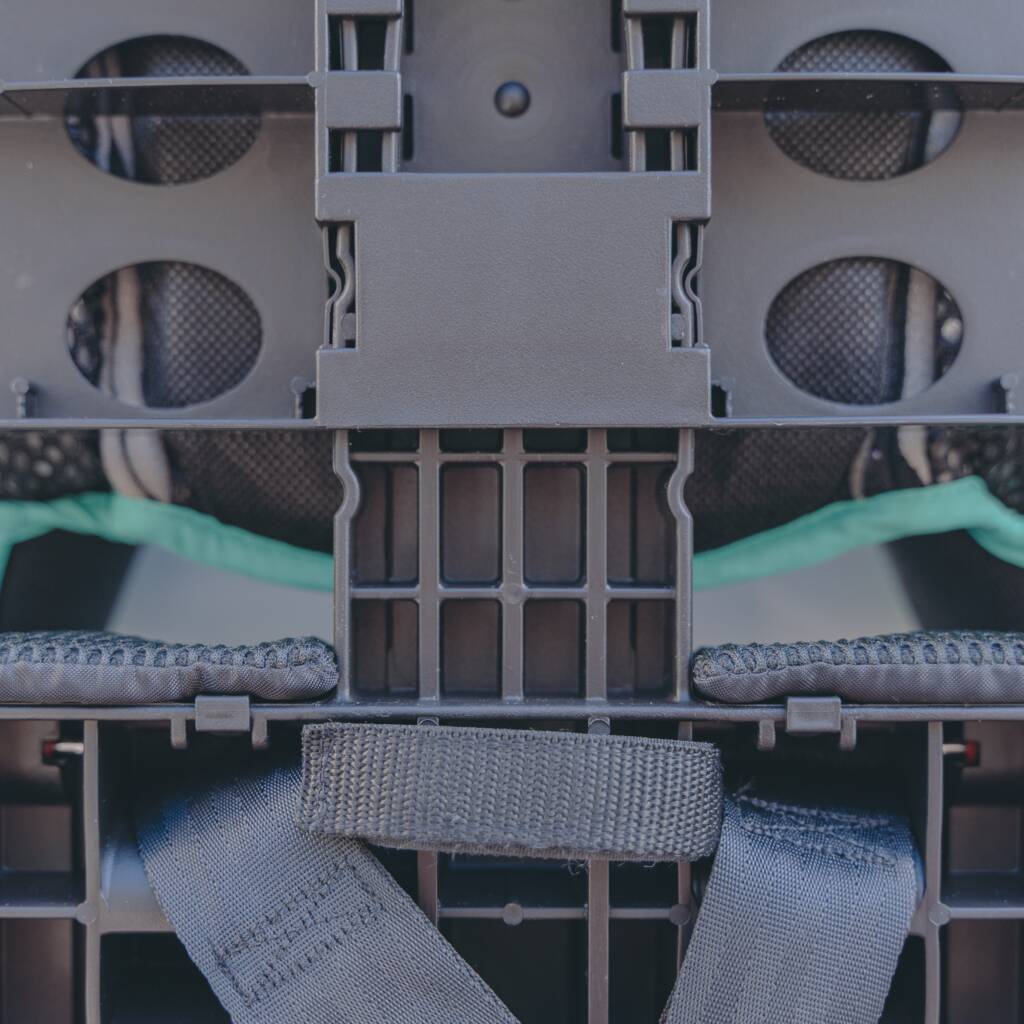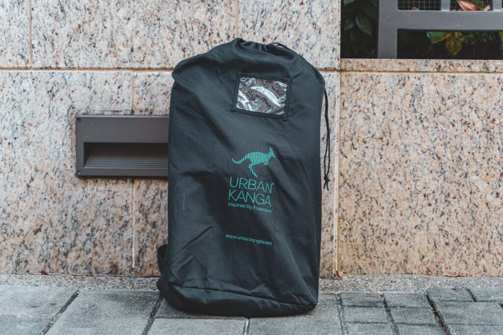 Urban Kanga 兒童安全座椅折疊起來可以收納到附贈的袋子,不只是收納,還可以背起來,方便攜帶,實在是相當貼心又極度實用的功能!