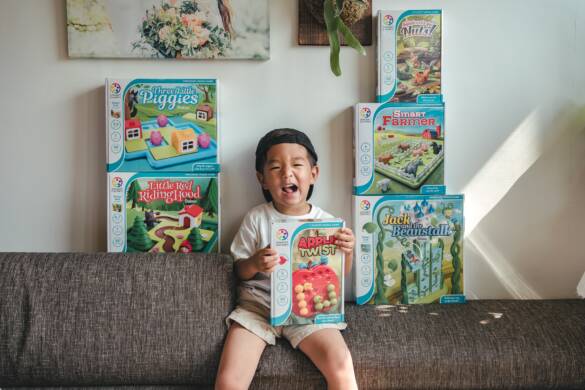 第一次看到Smart Games就是在百貨公司,那時在恩2歲半,一開始的在恩只是被三隻小豬跟小豬的房子吸引,一直在那邊亂玩亂拿,那時我就走進看了一下說明書怎麼玩,後面開始跟在恩講解要怎麼玩、示範給他看,沒想到我們就玩了1小時,在恩還不肯走。