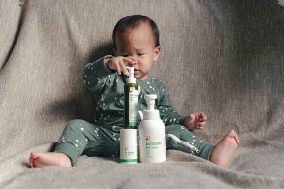 四年前懷第一胎時還是個經驗值0的新手媽媽,我開始在網路上搜尋哪款乳液適合在恩,發現網路上 Alobaby 乳液評價很好,很多媽媽都推薦。當時爸爸很常到日本出差,就叫他買一罐回來用用看。Alobaby不只好用,連在恩有意識之後也很愛跟我要,學我擦保養品的樣子擦臉。