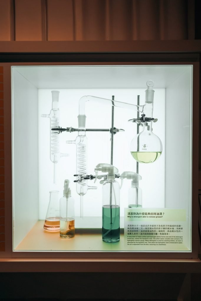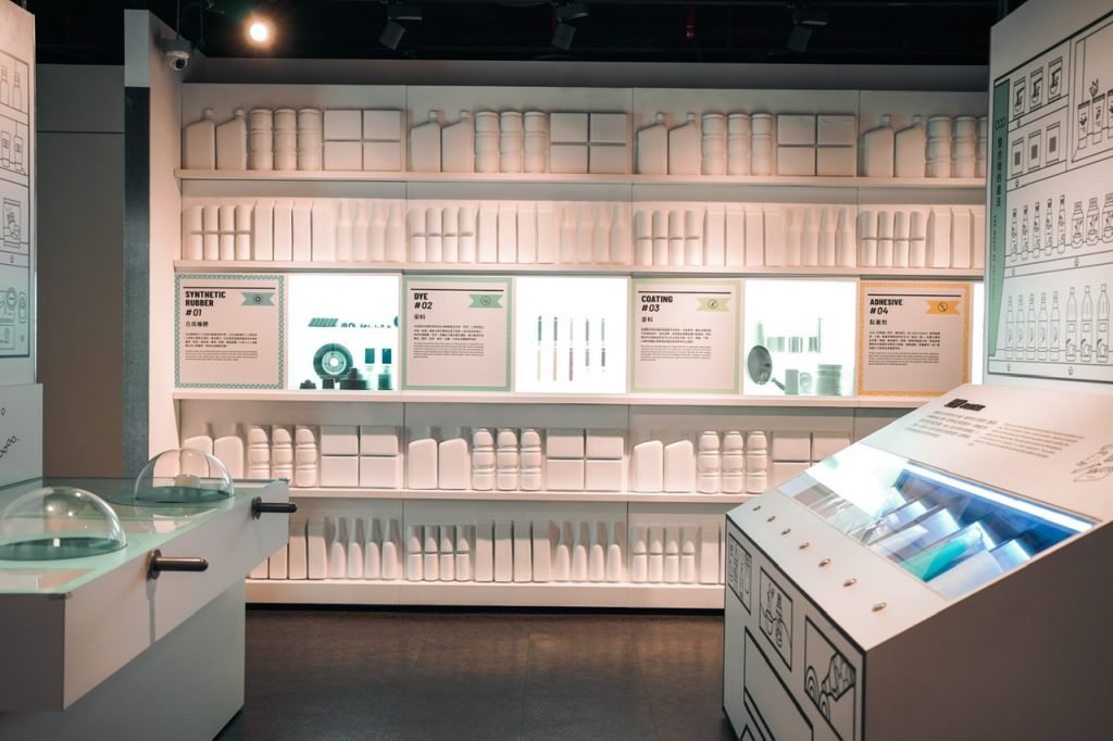 除了玩互動遊戲之外,在二樓的展區可以看到很多石化產品的應用,了解到石油不只是做成汽油,更是深入在生活中的各個層面。