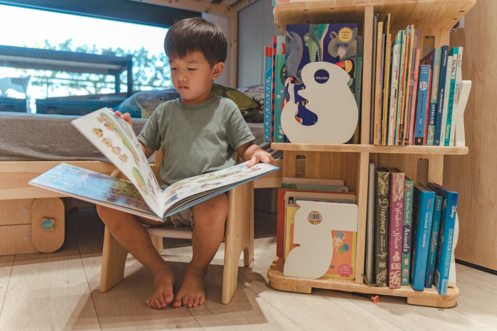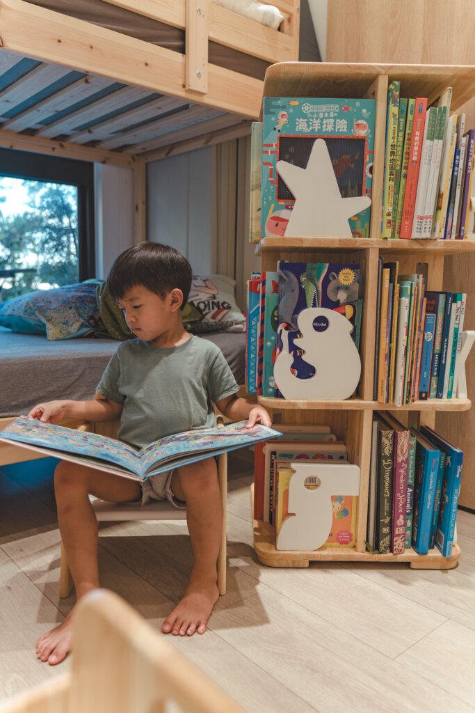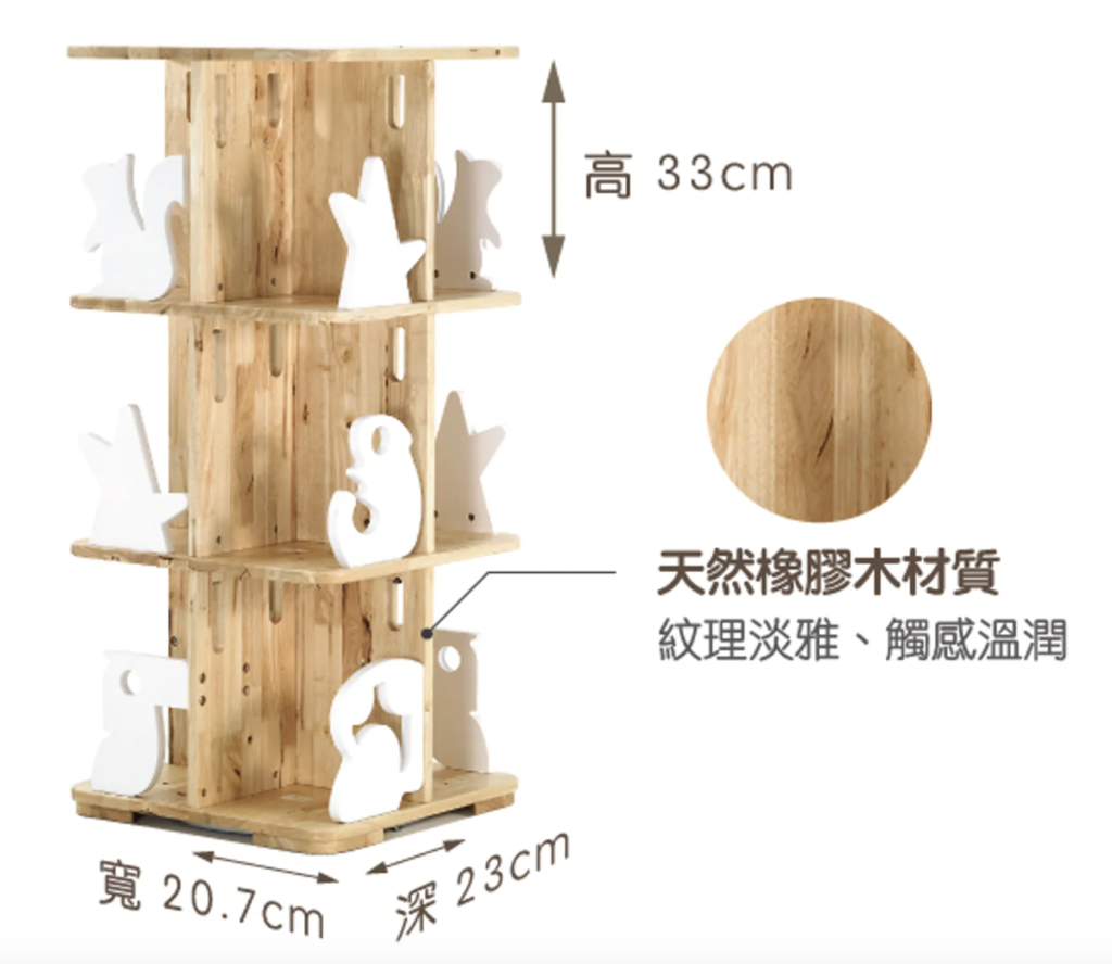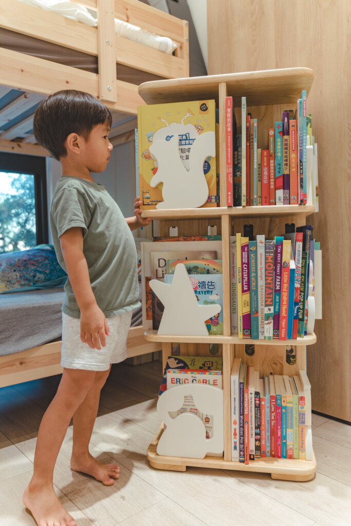 旋轉書櫃的每格書櫃都不會過大或過深,可以讓孩子偏小的力氣準確地取出跟放入書籍。這絕對是很必要的功能,因為方便使用才會提高孩子對於閱讀的興趣。