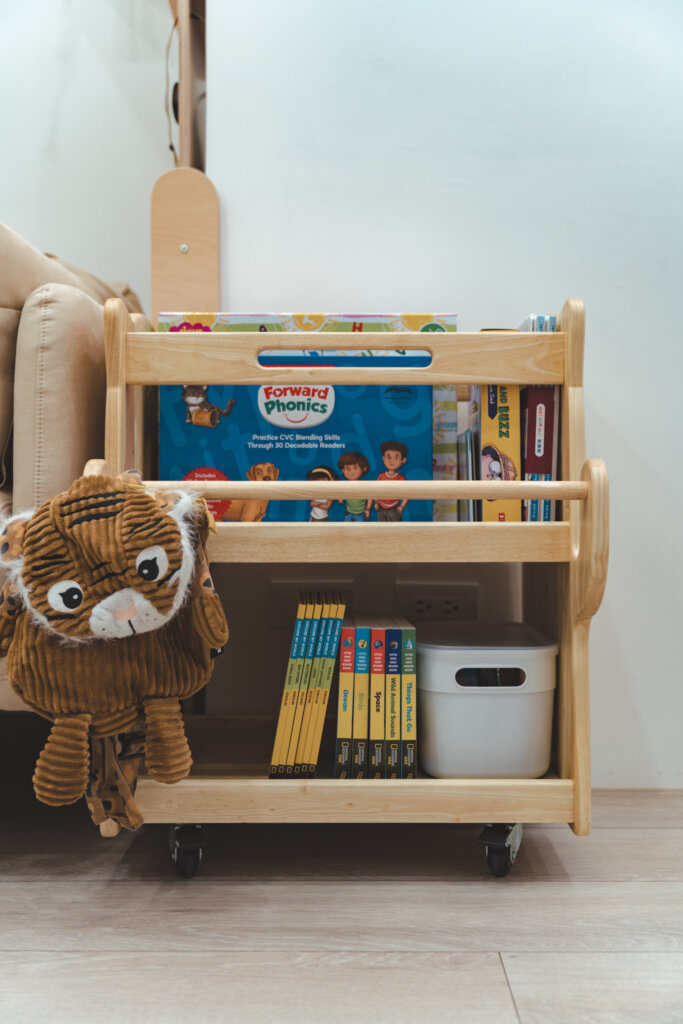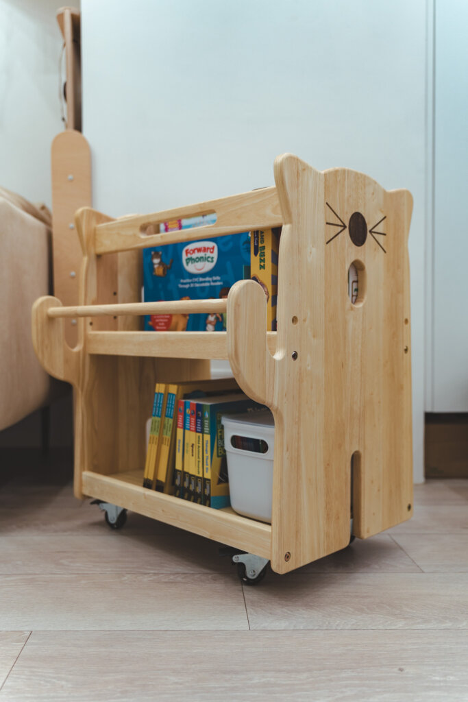走到哪推到哪的行動書櫃,甚至要作為學習的收納書架都沒有任何問題。有時孩子回到家後不知道書包或是經常使用學習用品都可以收納在行動書櫃中。