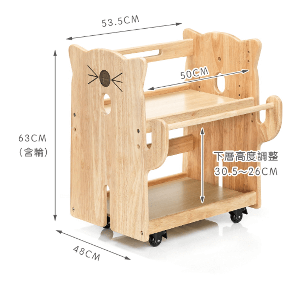可以是書櫃、也可以是兒童物品收納櫃。可以自行調整上層為雙面展示書架,也能調整上層為側插收納書櫃,甚至拿來當文具收納櫃都不是問題。
