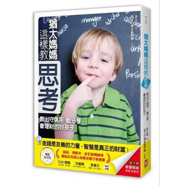 猶太媽媽這樣教思考》此書以在外商公司任職的中國媽媽與猶太同事兩個家庭的互動經驗為主軸,以簡明的生活故事說明,為什麼猶太人的商業頭腦傲視全球?猶太人的理財觀有什麼不同?猶太人的人生智慧與卓越的思考力,如何落實在教養上,成為孩子一生最大的財富?此書清楚呈現猶太人獨特的理財觀與價植觀,並且提出既簡單又實用的教養建議。