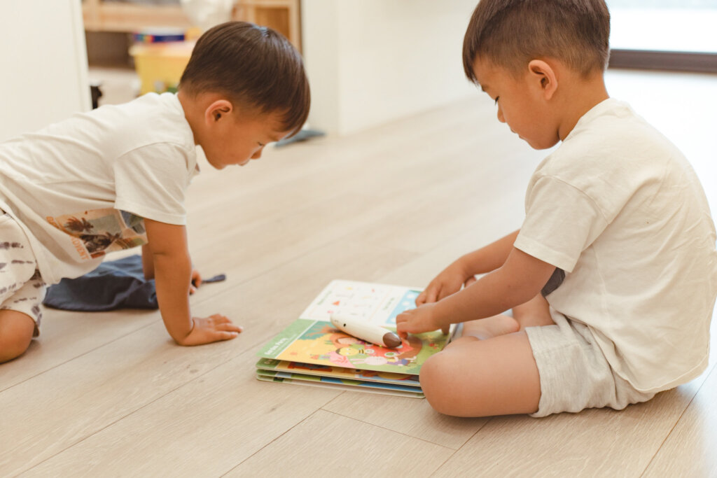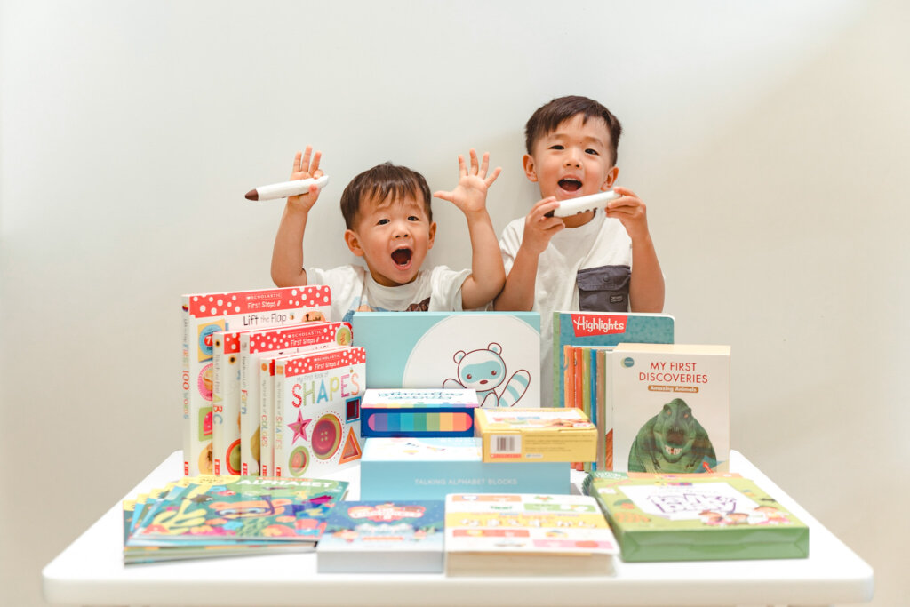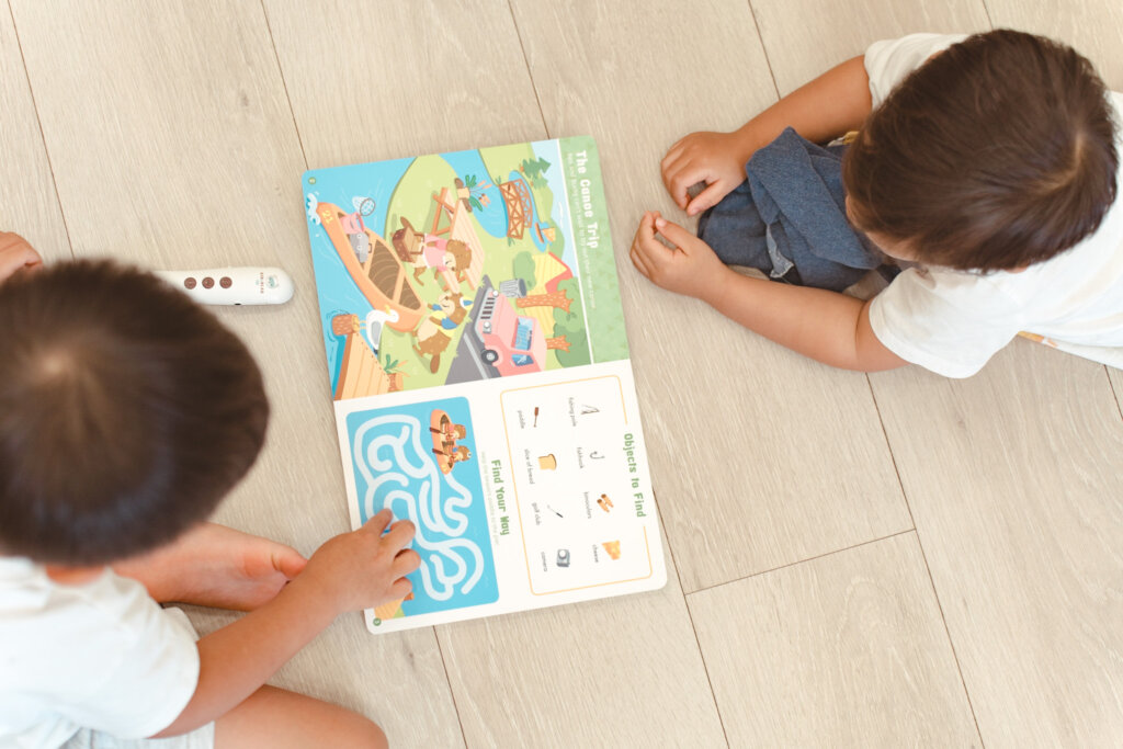 我們家超愛逛書店,有次看到誠品在賣一組套書,原價4000多元,但當時的折扣是990元,我們就立刻購買。因為繪本內容也是教學自然發音的教材,所以我透過點讀貼紙的功能,讓孩子的這套書變成點讀的書籍。有時媽媽忙碌時,他們就能用點讀筆來聽故事。