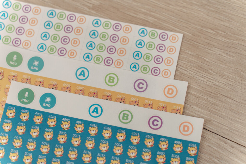 另外kidsread在點讀貼紙上更特別的是,一般的貼紙只能建構一個語言的音檔,但kidsread將一張貼紙設為四種路徑,所以可以同時放入四種語言。因為有些教材父母想同時教孩子中文跟英文講法時,真的超好用的。