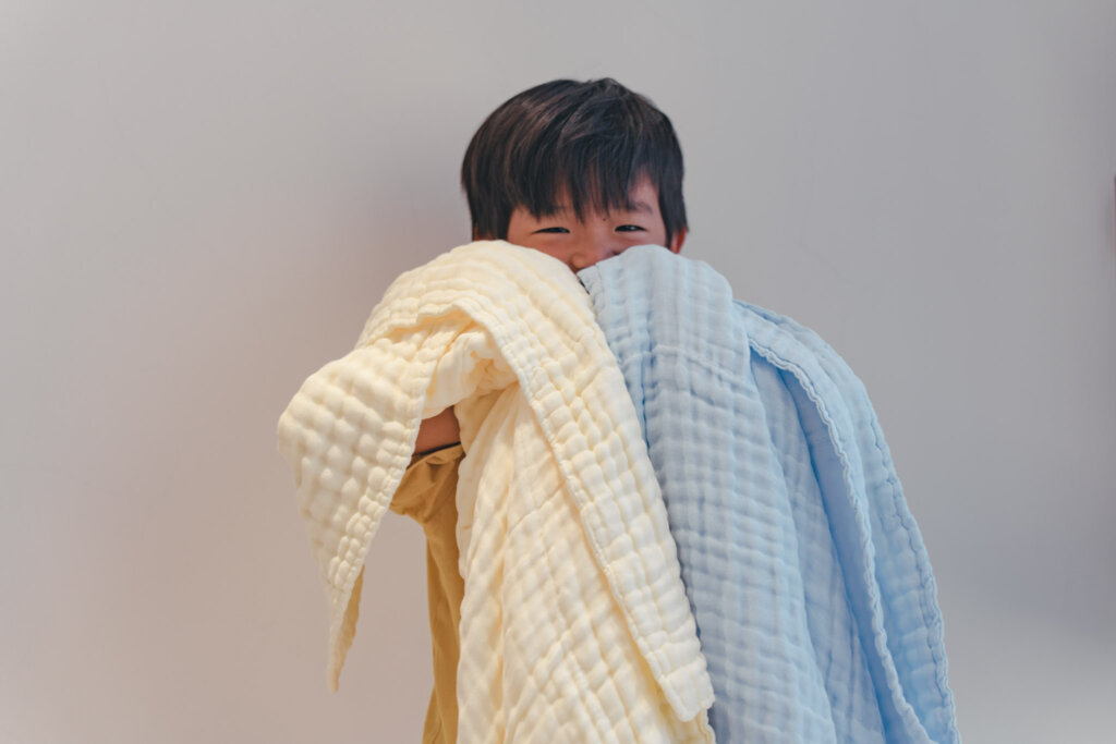 紗布巾主要分為3層紗、6層紗與9層紗,這是厚度的不同,再來就是紗布巾的大小,可以依照需求來挑選