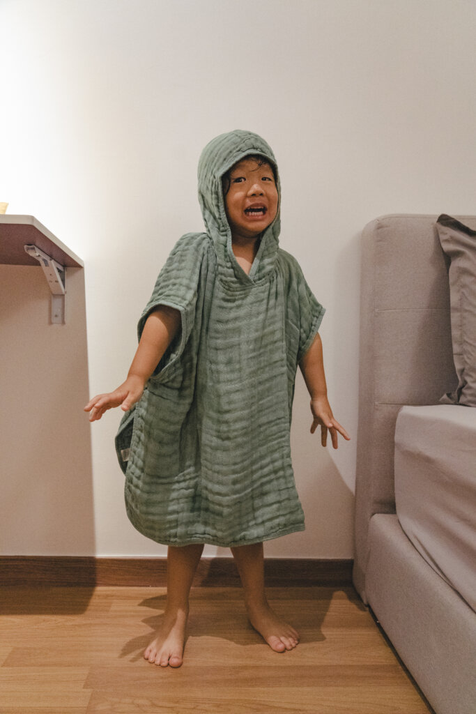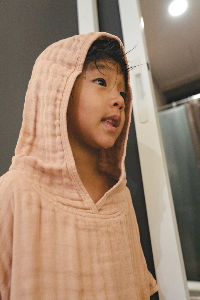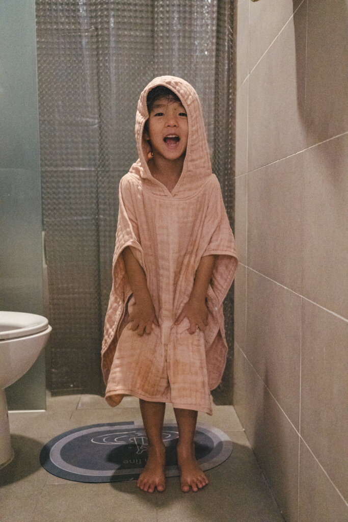 另外我覺得最明顯的就是當浴巾使用時的吸水力,真的一披上去輕輕按一下,水就吸乾了。對於我每天要一打二洗澡的媽媽來說,真的有夠快速。天氣漸漸轉涼,快速將身上水分帶走,也比較能避免洗完澡著涼的問題。