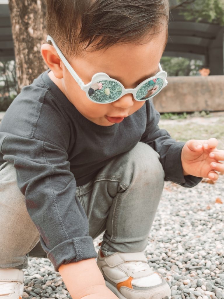 Diabola 專為12個月以前的寶寶設計的眼鏡,讓當初三個月大的在熙也能帶著太陽眼鏡在陽光底下曬太陽,健康地產生維他命D。現在一歲四個月大的在熙戴起Diabola一樣很適合也很可愛。