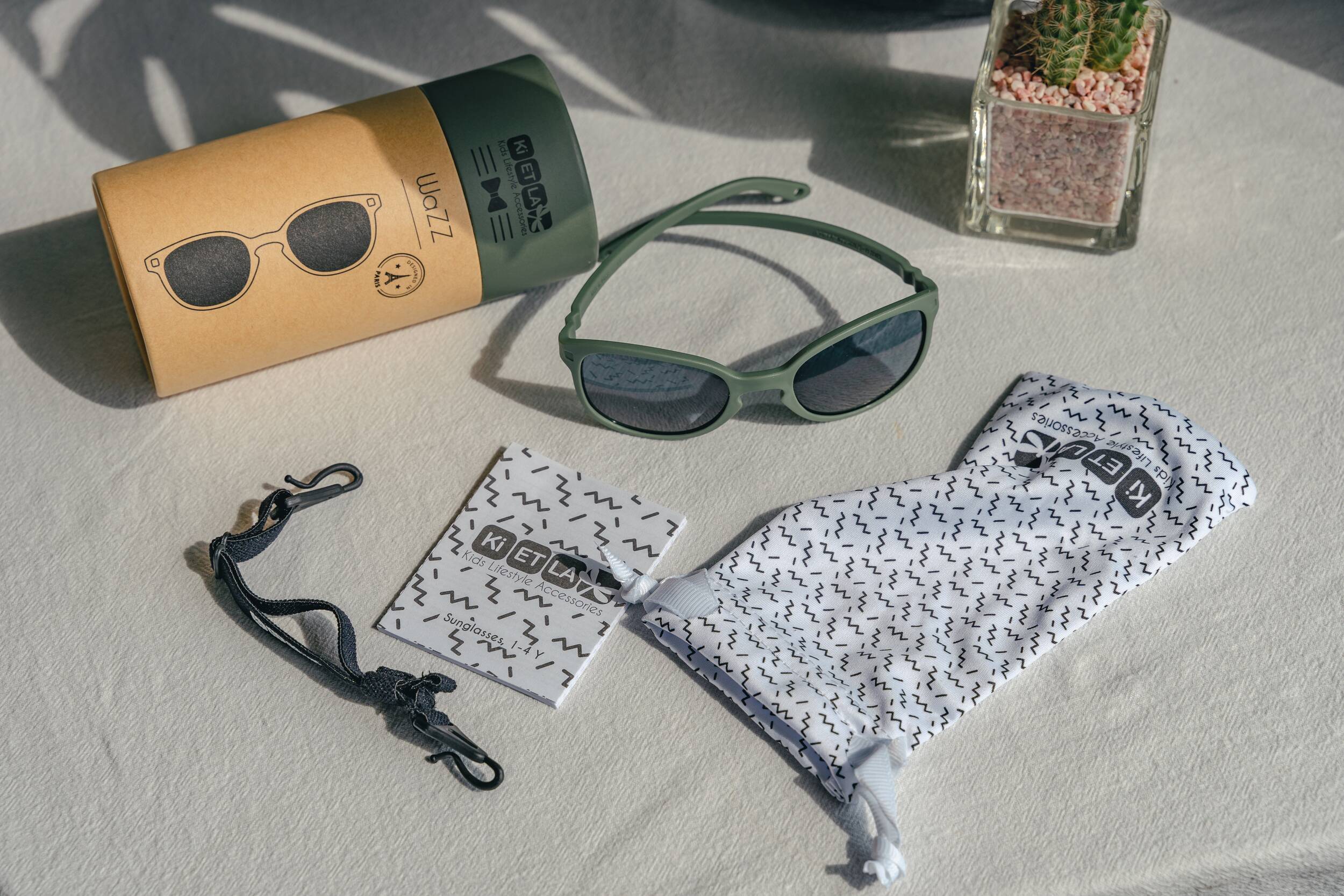 Ki ET LA 兒童太陽眼鏡在各個方面都符合以上所說的條件,從設計和配色上就可以看得出來是來自時尚的法國。Ki ET LA 採用可回收的紙筒包裝設計,若不需要外盒收納時,可以直接回收,愛護我們的地球。