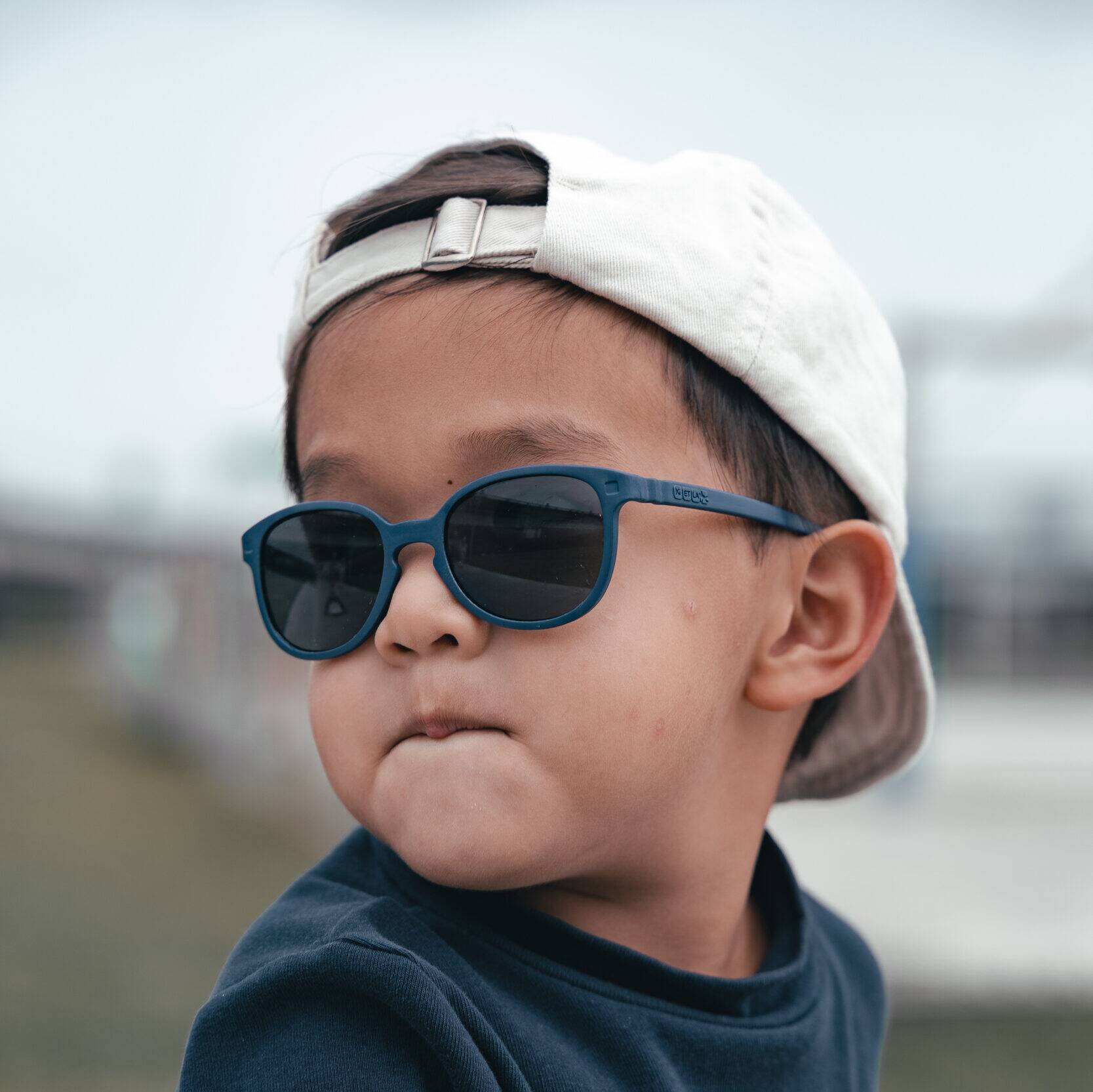 我們這對夫妻不喜歡太童趣的兒童產品,也因此為了兒童太陽眼鏡苦惱許久。因為大多數的兒童太陽眼鏡不是顏色設計太鮮豔,就是鏡框太粗壯、沈重。