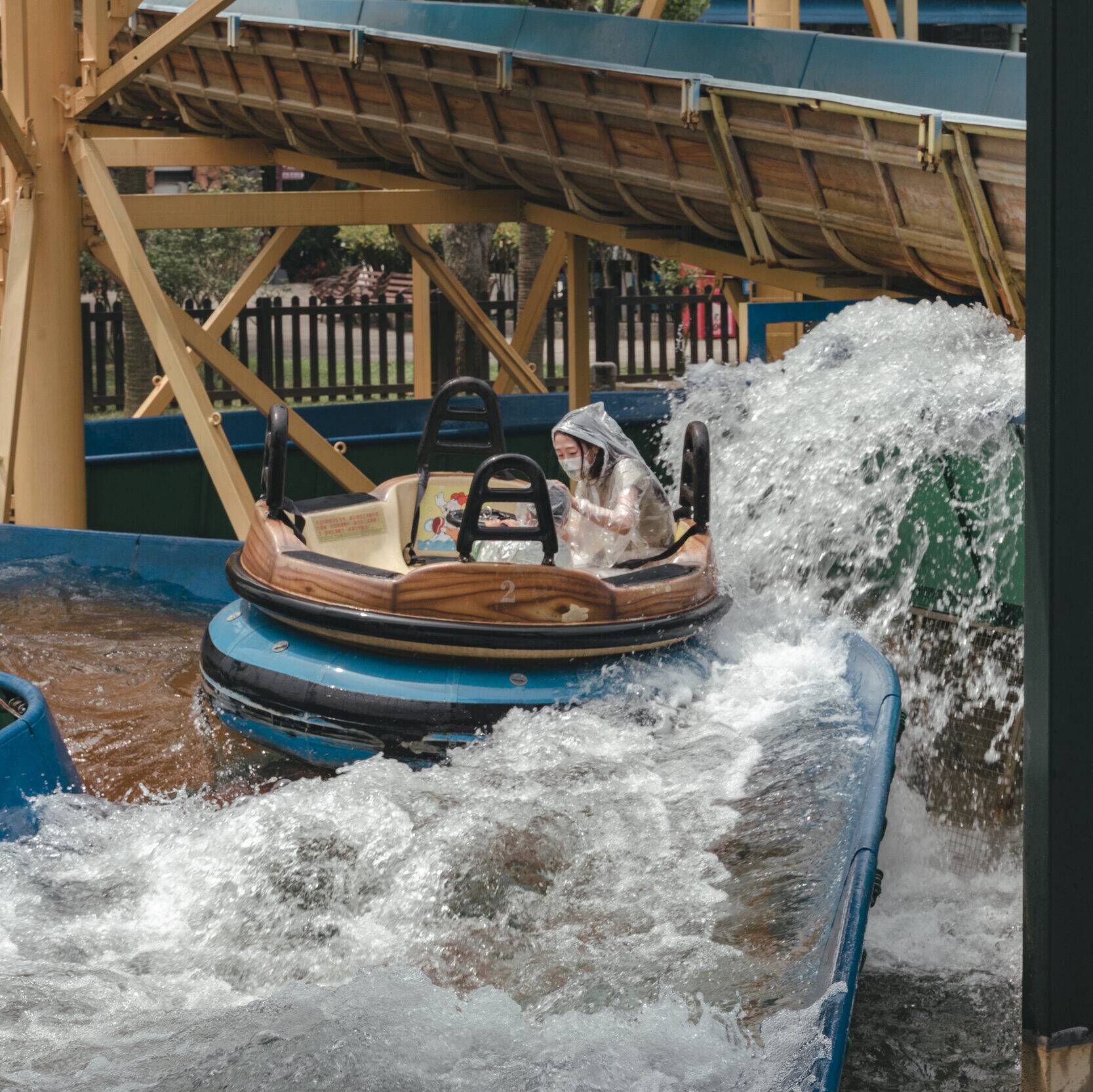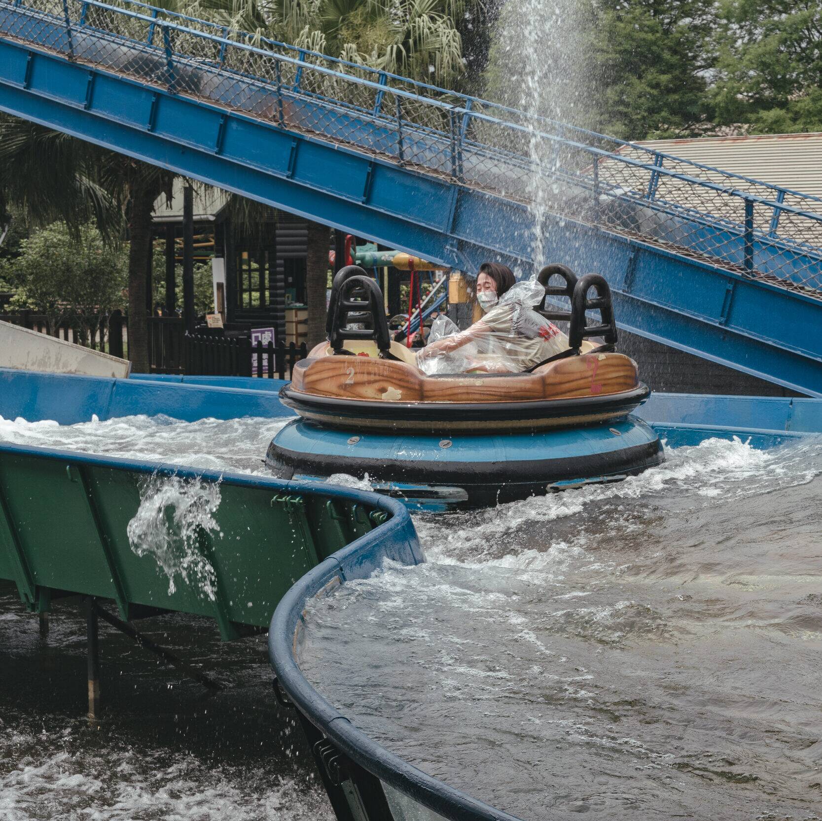 這個遊樂設施其實沒有太刺激,就是會一直噴水。在恩一開始說想玩,開始玩了之後一路閉眼睛尖叫哈哈。