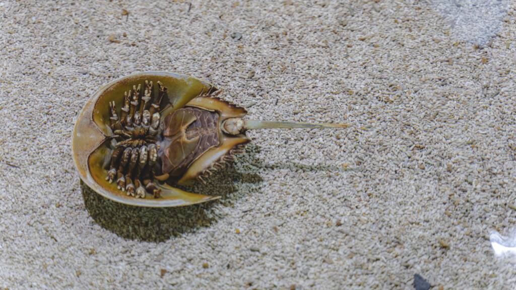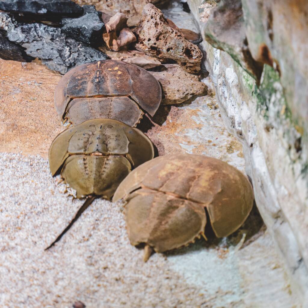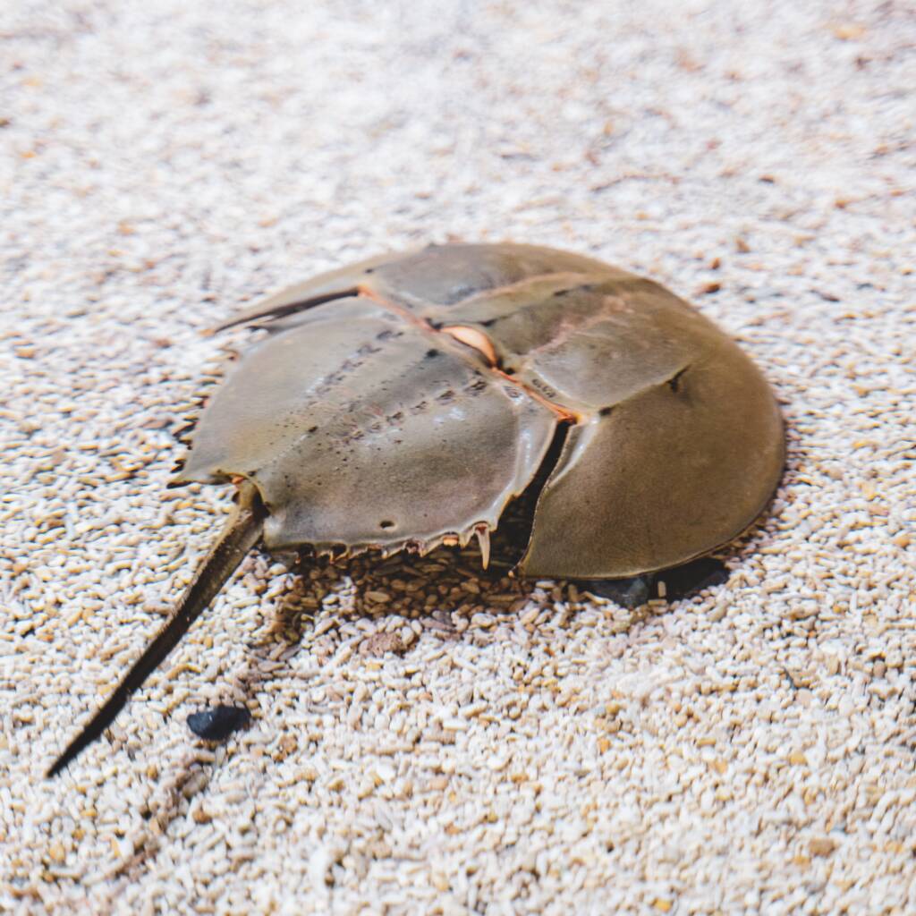除了常見的魚類、章魚、海龜等等,海洋公園還有比較少見到的「鱟」(ㄏㄡˋ)。鱟是在世界上生存了3億年的活化石,因為鱟的血是藍的,又有超強的抗菌能力,因此被過度捕捉做成細菌檢測試劑而數量急劇減少。