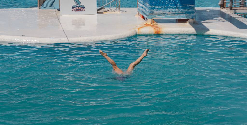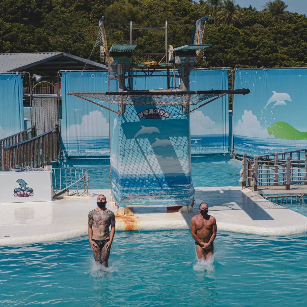 海洋世界的表演分為幾個項目:國際水上表演、海獅表演、海豚表演。首先開場的就是俄羅斯來的國際跳水團隊。