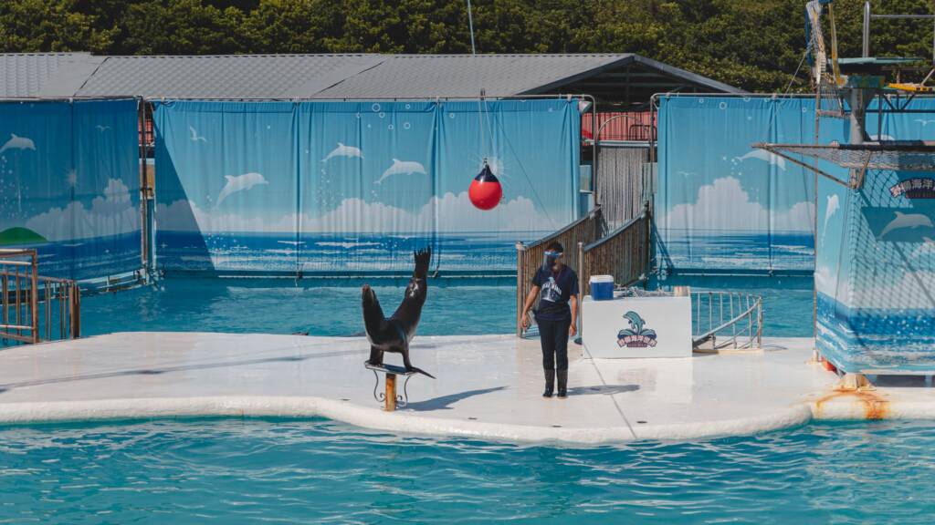 表演的一開始就是讓海獅做一些動作,像是馬戲團一樣,然後讓海獅到前台吼叫一下,讓我們聽聽海獅的聲音。但如果只有這樣的話,野柳海洋世界就不值得推薦大家來了,因為好戲還在後頭!