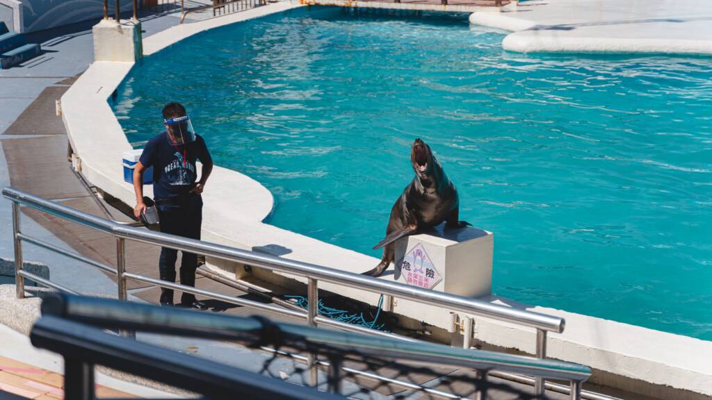 然而最近因為疫情的關係,剛裝潢好的一樓空間無法開放參觀,實在相當可惜。同樣也是因為疫情的關係,海豚親親、海獅親親票都沒有販賣。不過我還是有親到海獅!在接下來的文章中會提到,真的相當幸運!