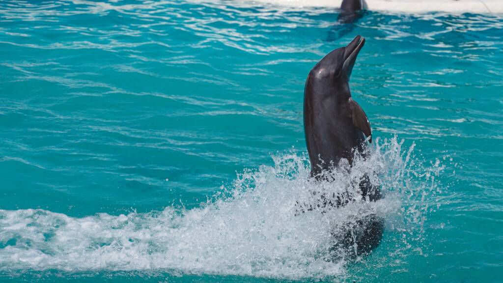 海豚真的很厲害,可以從水中跳到水面上約三公尺的距離。