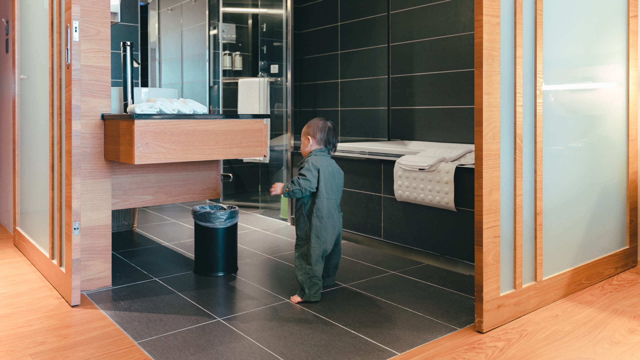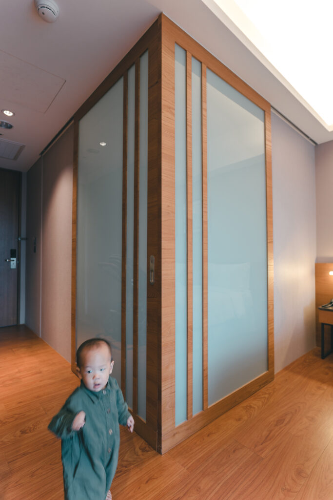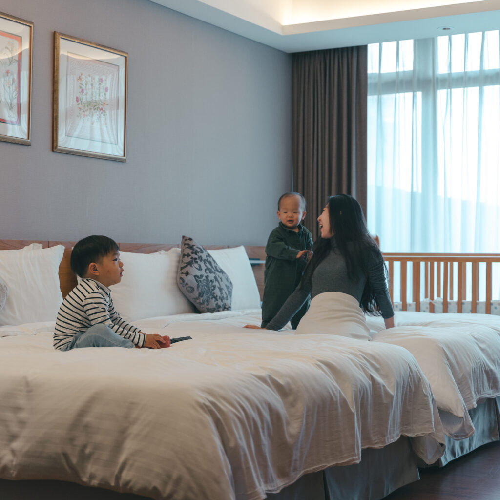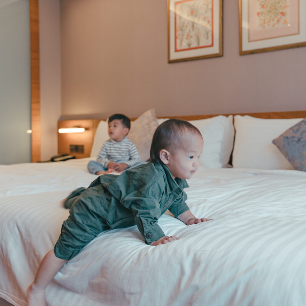 這次入住的房型有兩張雙人床,另外我們也請飯店提供免費的嬰兒床、澡盆、消毒鍋。房間的大小真的很舒適,才剛會走路的在熙無障礙物的一直在房間內四處探索,而在恩不是在大床上跳來跳去,就是被電視綁架了。