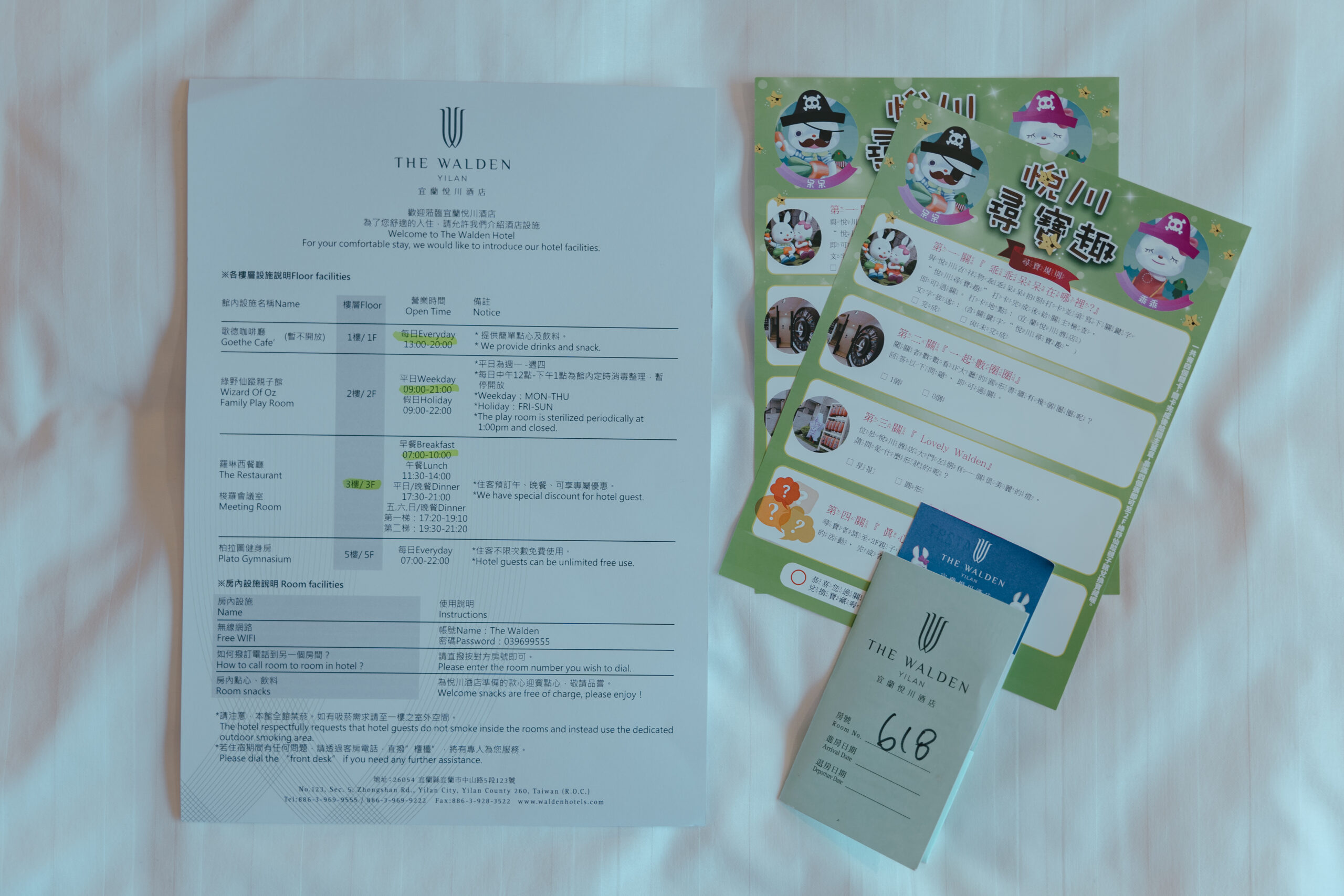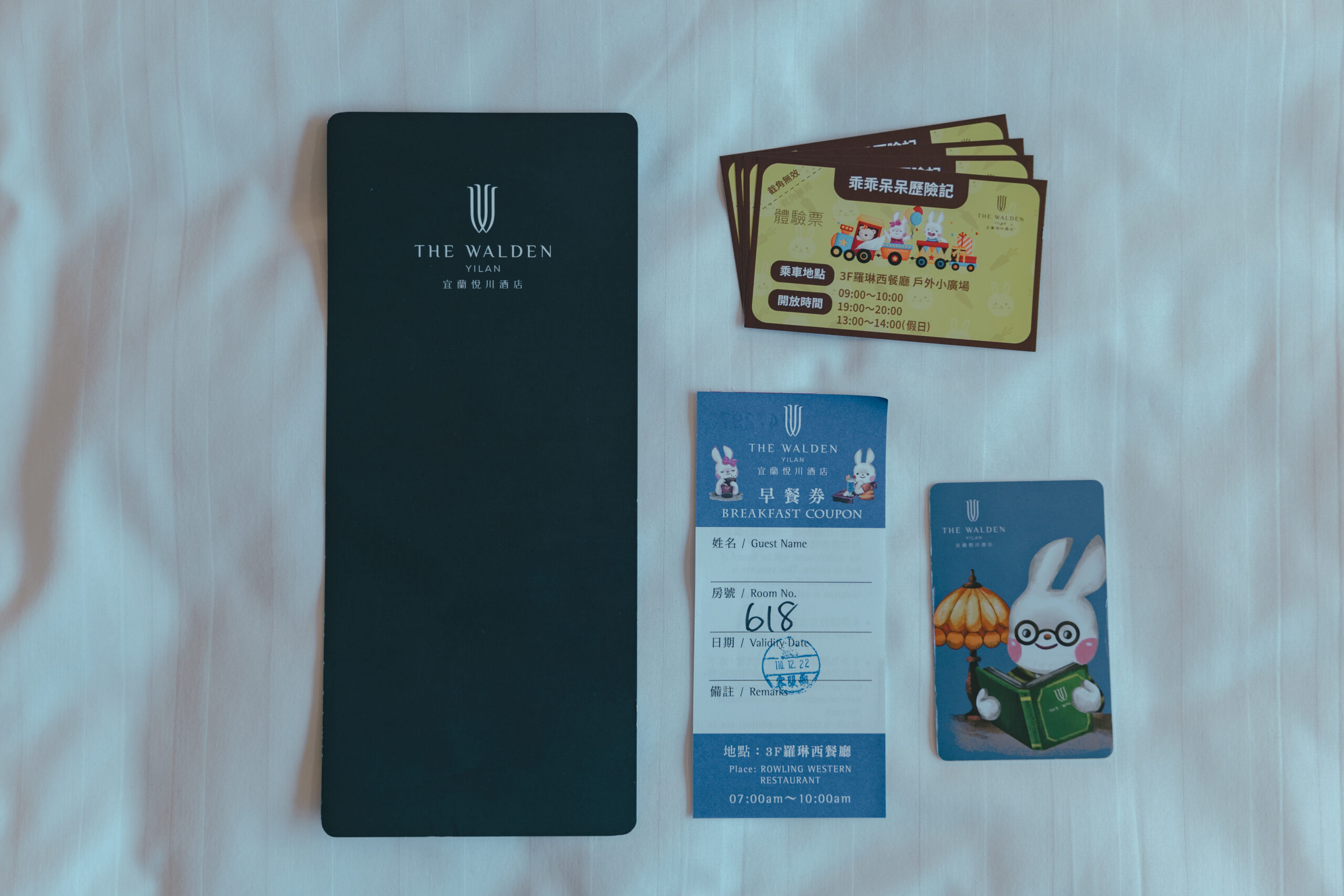 <入住時會拿到的入住說明、房卡、早餐券>