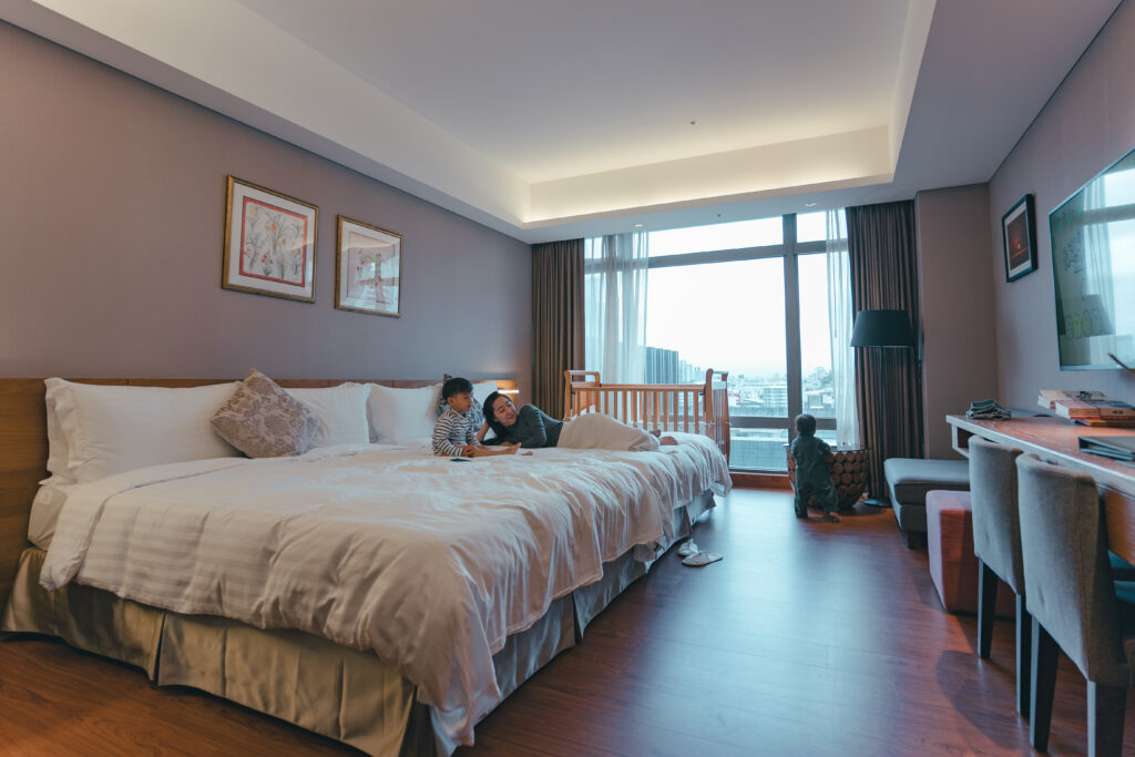 親子飯店也不是只有遊戲室而已,還有戶外小火車,甚至有非常多的兒童活動提供孩子玩樂。不論是闖關活動獲得小贈品,每房提供100元全聯購物金(全聯就在飯店旁邊)供小孩購物結帳算錢的小體驗(活動時間為16:00可直接到大廳集合),就連遊戲房也會有活動時間,簡直是小孩放電,家長解脫的好所在。