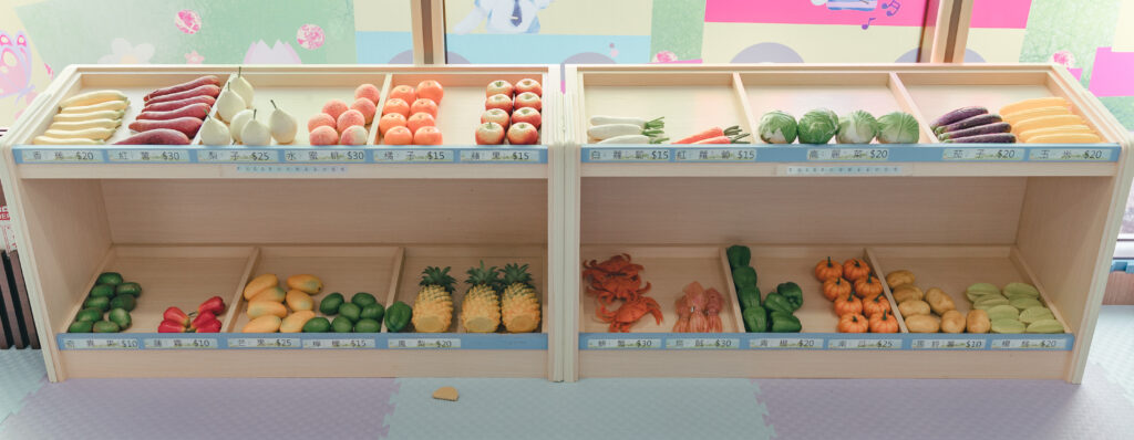很常遇到類似像這種廚房類的設施都容易被孩子破壞或是玩壞,但整體來說他們選的材質跟維護上很好,所以不會有爛爛的地方,可以讓很有廚師魂或是買菜魂的小孩來這裡大展身手。