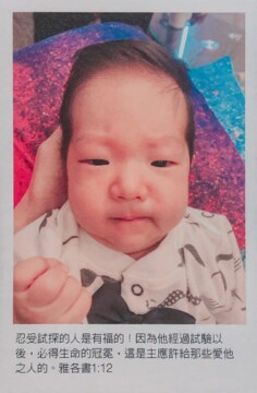 回想這一年,實在是感謝身邊許多的人對Zion的愛,常常一個簡短的問候都讓我們感到相當窩心和感動,這也讓我想到華人常掛在嘴邊卻是出自於聖經的:「施比受更為有福」(馬太福音5:7),不能總讓大家祝福Zion,也希望大家來不是只送禮物給,而是兒子也能祝福這一年來一直關注與愛護他的人。於是媽媽想說做祝福的卡片,放上Zion的照片,再加上一段跟照片比較符合的聖經經文,讓Zion沒有獨享祝福,也能祝福每位來參與的叔叔阿姨哥哥姊姊們,回饋他們對Zion的愛護和關注。我們是透過點點印製作祝福卡片,點點印有設計好的版型,只需上傳照片和輸入文字就有超有質感的印刷設計品,不需花太多腦筋搞定設計和廠商。